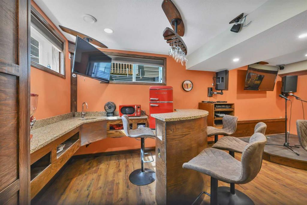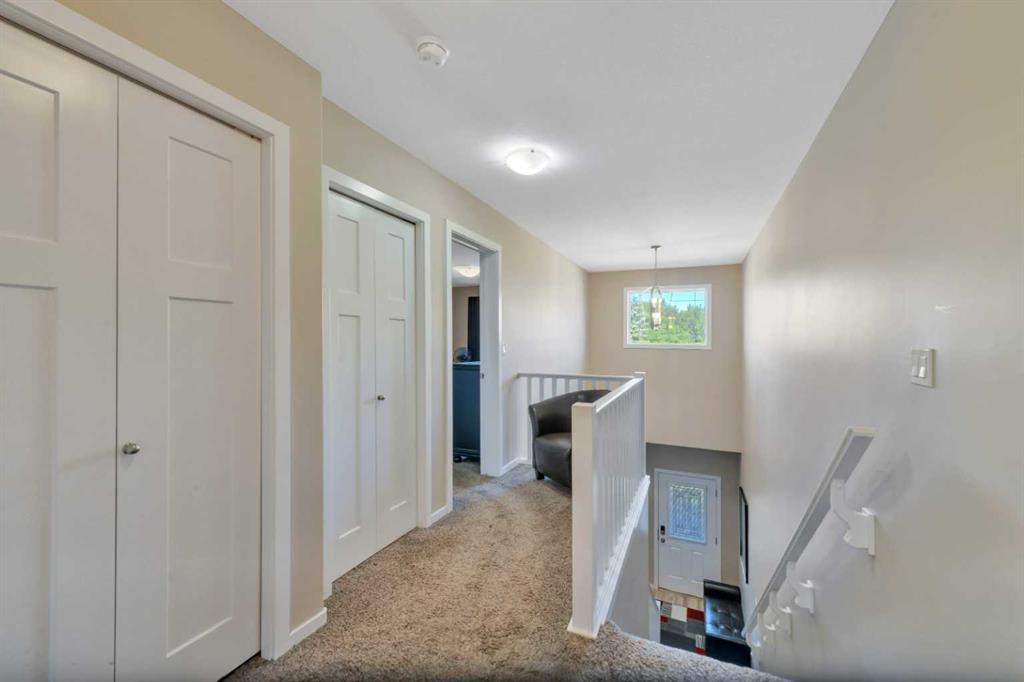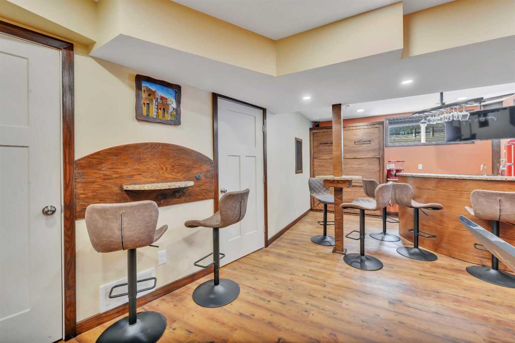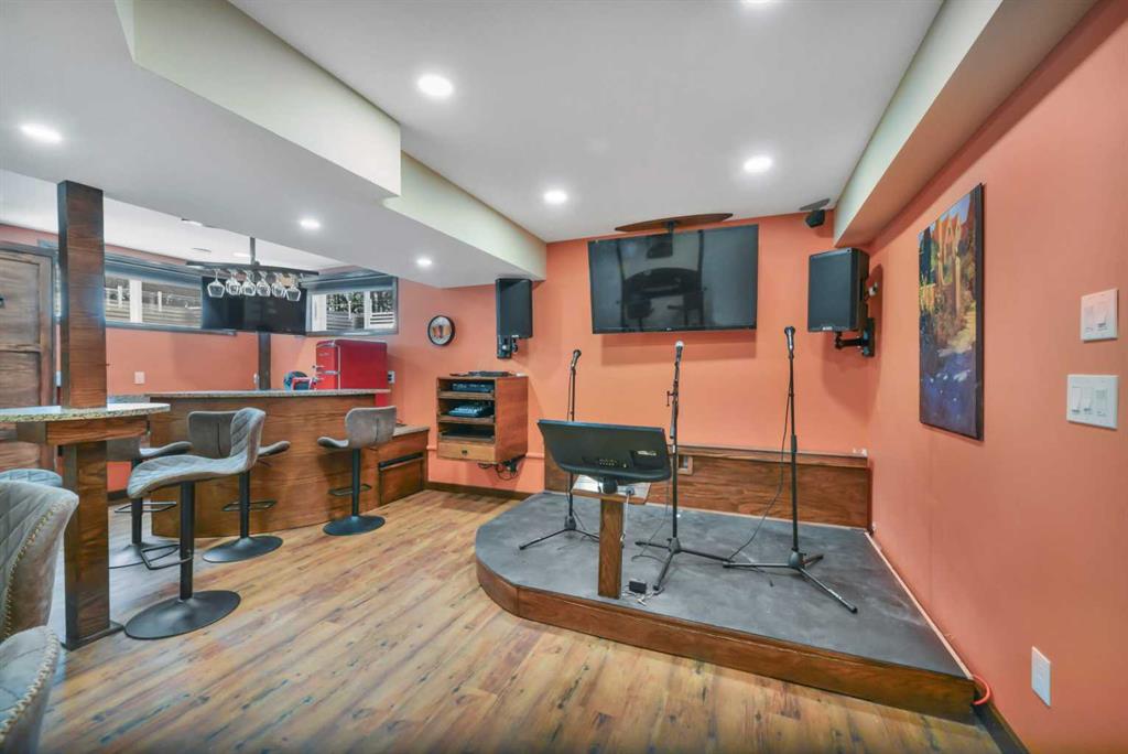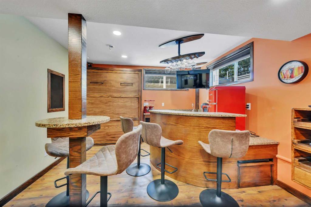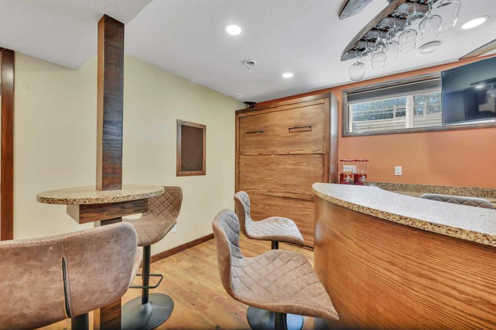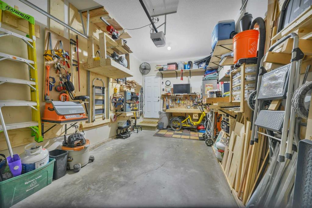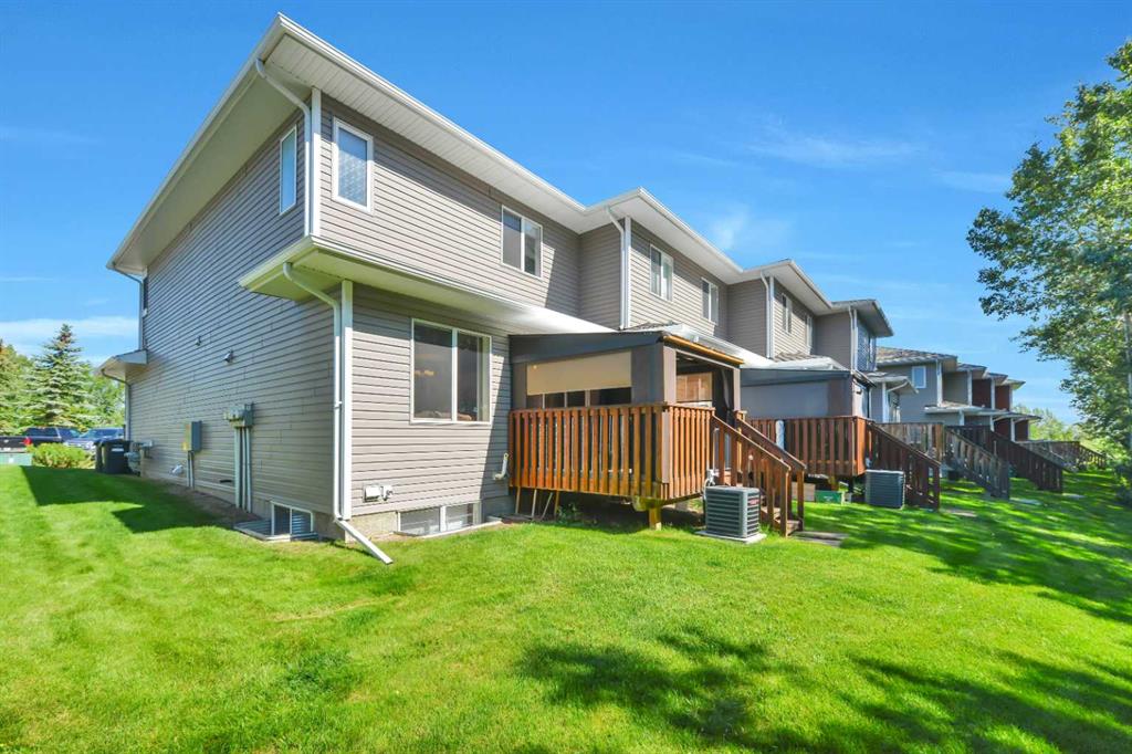 One-owner townhome walking distance to Sylvan Lake and backing onto a peaceful treed area! This beautifully maintained home showcases true pride of ownership with countless custom touches throughout. Featuring 2 large bedrooms, each with its own ensuite, gorgeous vinyl plank flooring, a covered back deck, and a single attached garage that is a woodworker’s dream with a custom tool lift, built-in workbench, and more. The kitchen offers incredible function with custom drawer pull-outs and thoughtful storage solutions. The fully finished basement is an entertainer’s dream with rich oak woodwork, a custom bar, stage, pub-style seating, built-in Murphy bed, surround sound, and a warm, inviting atmosphere. Every detail has been carefully designed and lovingly cared for, making this home truly one-of-a-kind and move-in ready.